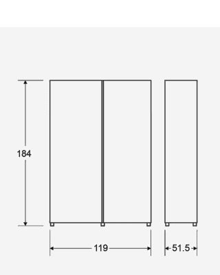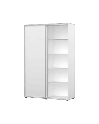 ארון עם 2 דלתות הזזה, מרובה מדפים בצידו האחד ושטח רב לתלייה בצידו השני.