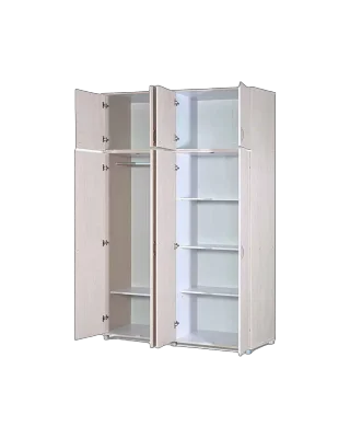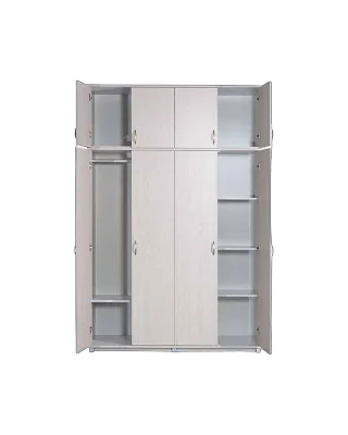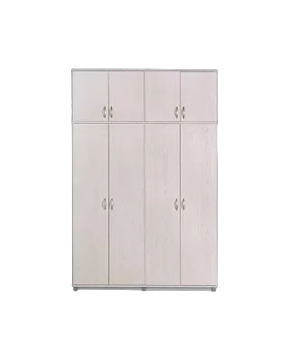 ארון 4 דלתות צד אחד מדפים צד שני תליה רחבה ומדף וארון עליון לתוספת שטח אחסון.