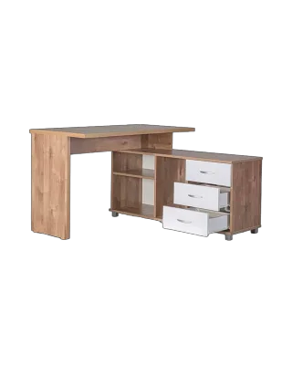 שולחן פינתי 3 מגירות לבנות - דגם מאי